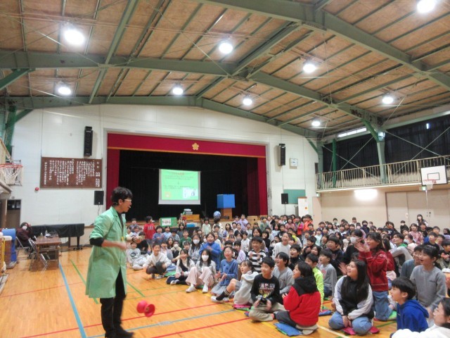 今年度、「笑顔と学びの体験活動プロジェクト」では「らんま先生のサイエンス&エコ実験ショー」を実施しました。子供たちは、環境問題や科学について実験を通して楽しく学びました。ギネス記録にも認定された「巨大空気砲」を体験するなど、知的好奇心を高めながら楽しく学びました。