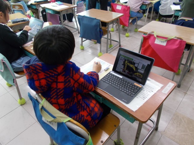 国語「のりものカード」をかこうの学習では、調べる「乗り物」や「調べ方」を自分で決めて、活動しました。子供たちは自分の学習のめあてに沿って、図鑑やクロームブックを活用しながら、自分のペースで学びを進めることができました。