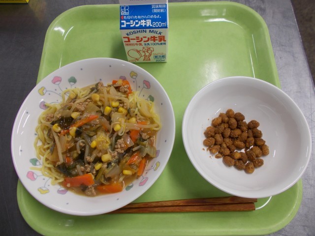 今日はリクエスト給食の主食部門で1位だった「みそラーメン」の献立です。