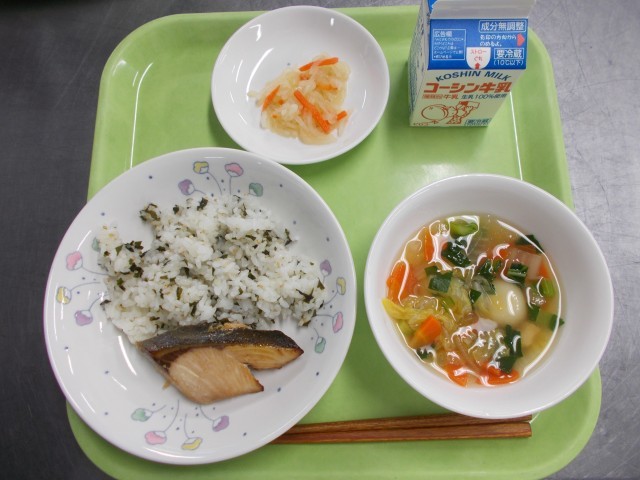 わかめご飯は、志村小でも人気のご飯のメニューなので初日たくさん食べてくれました。