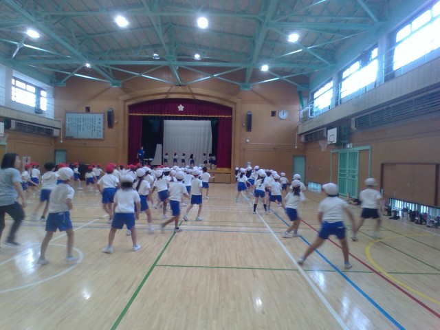 1年生は、2年生のお手本を見ながら、元気いっぱいに踊ることができました。