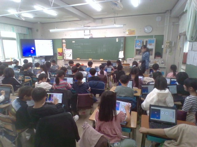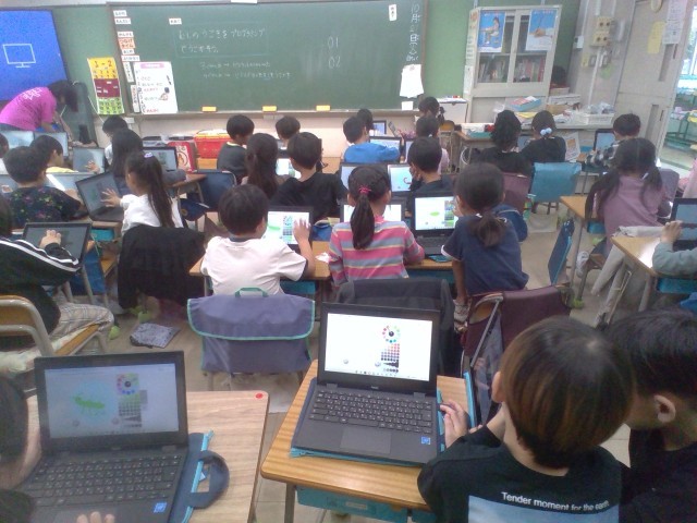 1年生 プログラミングに挑戦! 公開日 2025/10/22 更新日 2025/10/24 日記 1年生合同で、「viscuit」アプリを使って、プログラミングに挑戦しました!初めてのプログラミング学習に、目を輝かせて、楽しそうに取り組んでいました。生活科「いきものとなかよくなろう」の学習で、虫のお世話をしました。虫が動く様子を観察し、タブレットを使って動きを表現しました。