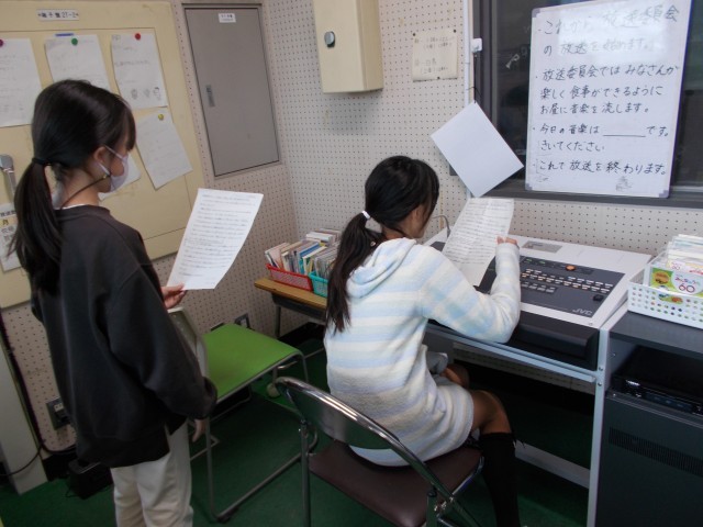 よくかんで食べることや、歯みがきの大切さを全校児童に向けて放送しました。