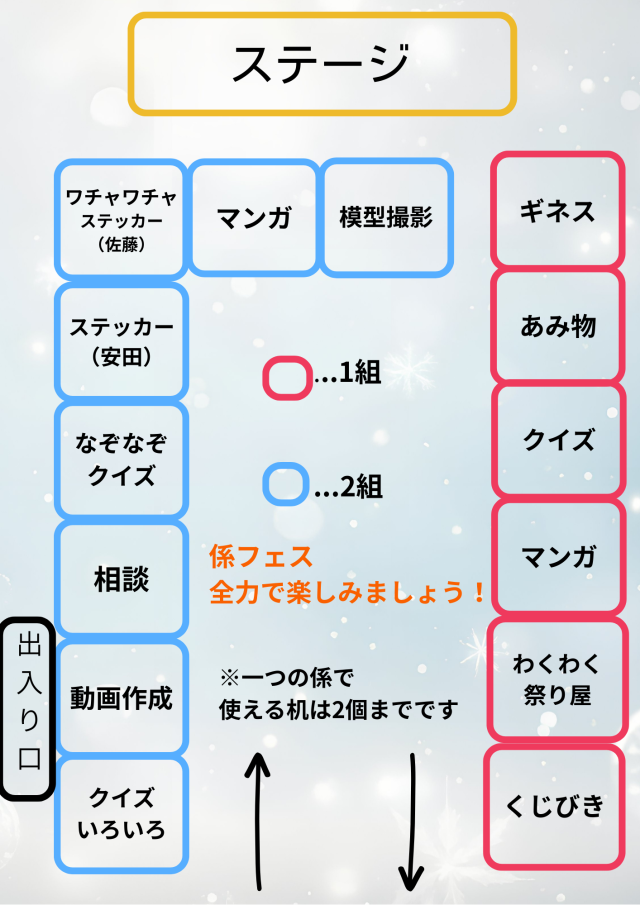 当日の司会、はじめの言葉、終わりの言葉、ブースの配置図やスタンプラリーの作成などを実行委員が中心となり行いました。
