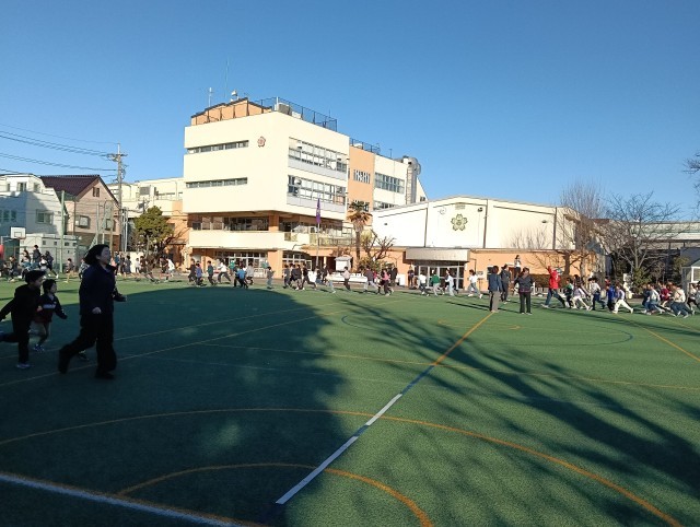 体育朝会「持久走」 公開日 2026/01/14 更新日 2026/01/14 日記 体育朝会では、全校で持久走に取り組みました。一人一人が自分のペースを大切にしながら走り、走り終わった後には、達成感とともに気持ちよさそうな表情が見られました。 月末には持久走週間も控えています。体調を整えながら、無理なく取り組み、体力づくりにつなげていきたいと思います。