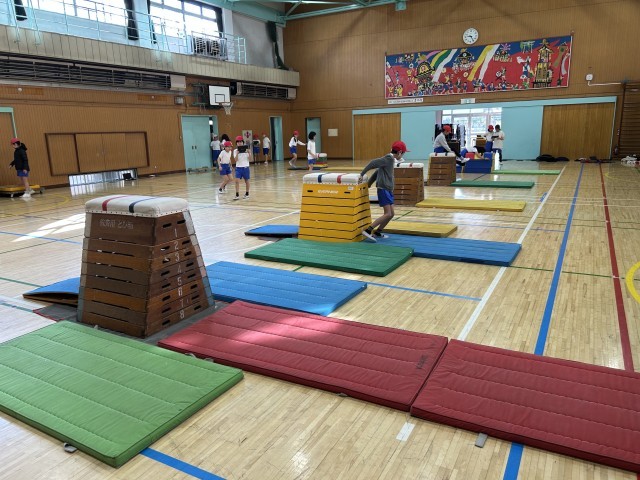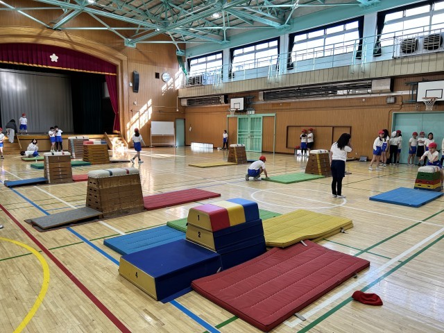 4年生の体育では「とび箱」の学習に取り組んでいます。