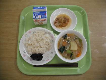 6月6日(月)の給食 公開日 2022/06/06 更新日 2022/06/06 給食献立 <今日の献立> 歯と口の健康週間 ・牛乳 ・ごはん ・のりの佃煮 ・魚の風味焼き ・具だくさんみそ汁 【今日の生鮮食品】 ・しょうが(高知県) ・にんにく(青森県) ・ながねぎ(茨城県) ・ごぼう(青森県) ・にんじん(埼玉県) ・じゃがいも(鹿児島県) ・たまねぎ(千葉県) ・だいこん(青森県) ・えのきたけ(長野県) ・あおな(茨城県) ・魚あかうお(アラスカ)