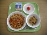 <今日の献立> ・牛乳 ・スープスパゲッティ ・10品目サラダ ・くだもの(い...