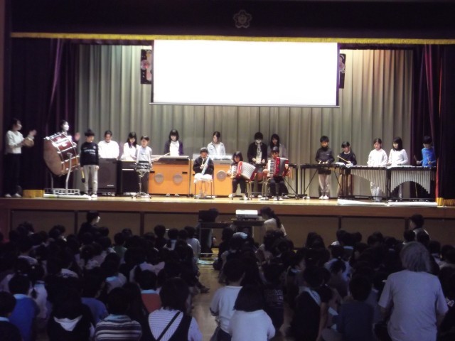 27日(月)に、代表委員会の司会で創立90周年記念集会を行いました。音楽クラブがオープニングを演奏し、運動クラブによるゴールタイムのクイズ、声優クラブとマンガクラブのコラボ作品の発表、6年生による志村二小のあゆみ、校章や校歌の由来などを発表しました。
