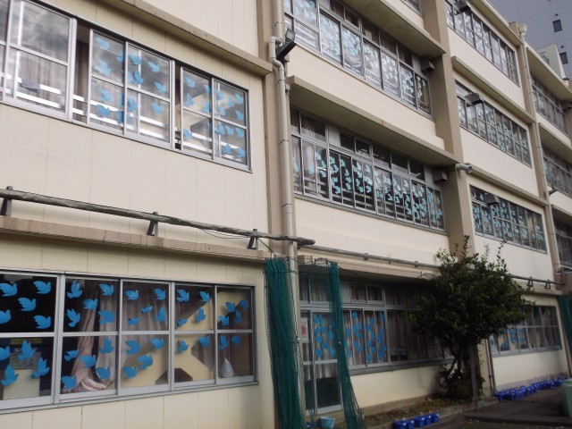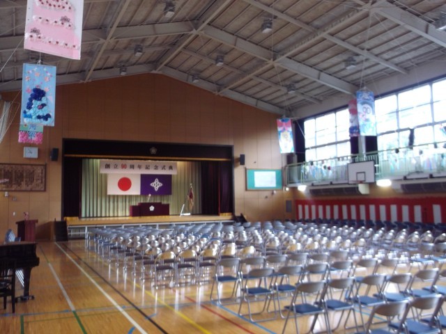 29日(土)に挙行される創立90周年記念式典に向けて、校舎内外でお祝いの飾り付けを行っています。