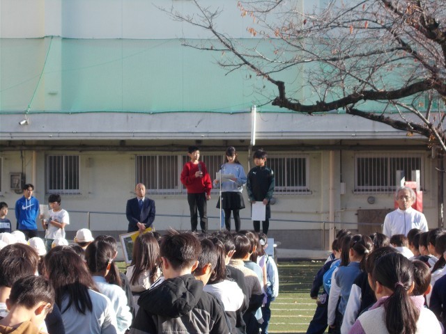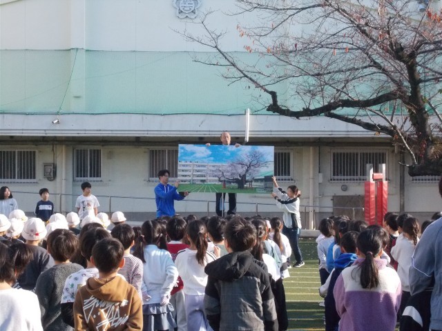 1日(月)の全校朝会で、先週29日(土)の創立90周年記念式典を振り返りました。在校生代表の5・6年生の態度が褒められたこと、いただいた記念品を大切にすること、お別れする桜のパネルをつくり、それを掲示すること等々。これからも全校で、志村第二小学校の素晴らしい伝統とよき校風をつくっていこうと話しました。