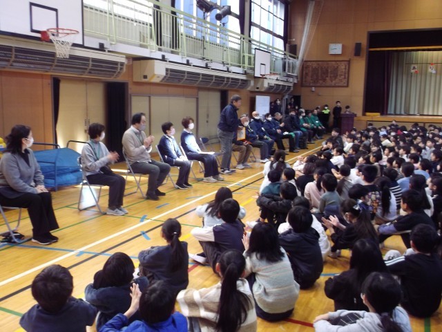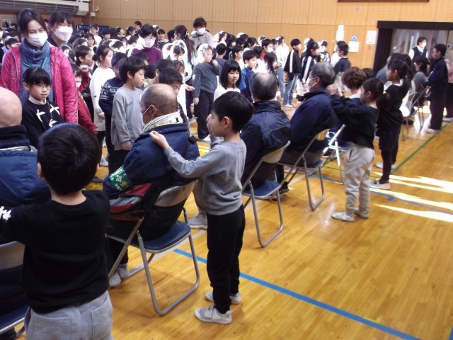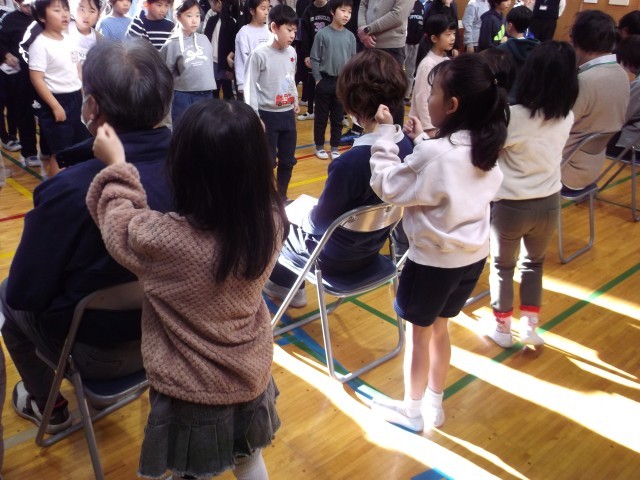 29日(木)に、ありがとう集会を行いました。児童がお世話になっている学童擁護員、主事、調理員、それぞれの支援員等に感謝の気持ちとして、肩たたきやクイズ、「さくらさけ」の歌声を届けました。