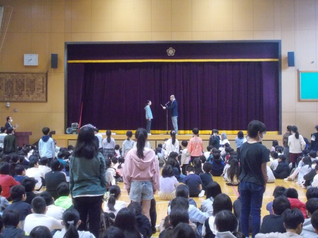 16日(月)の全校朝会において、先月の校内書き初め大会の表彰式を行いました。1~6年生の金賞受賞者57名から、6年生が代表で賞状を受け取りました。
