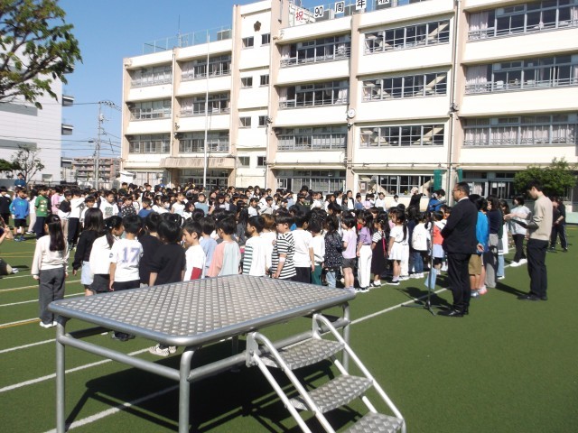 16日(木)に、1年生と在校生との対面式を行いました。代表委員会から校旗や校歌の由来を説明し、1年生からは「いちねんせいになったよ」を、全校に向けて歌いました。