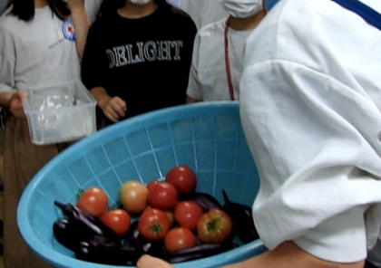 今日のスパゲッティには、志村二小でとれた「トマト」と「なす」が入っています。朝収穫した美味しい野菜を子どもたちが給食室に届けてくれました。どのクラスもよく食べていました。