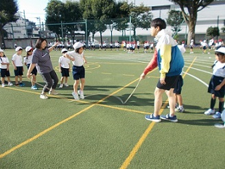 昨日、運動委員会が作成した「長縄の跳び方のコツ動画」を視聴し、本日の練習に臨みました。