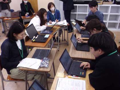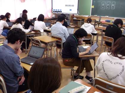 昨日、提案があった3年生の授業を全員で視聴し、自分が授業するとしたら・・・と想定しながら、成果や改善点、疑問点を話し合いました。この時間の話し合いの結果を、明日からの授業で試行していきます。