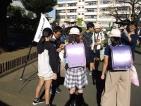 14日(木)に、たてわり班活動として、2組グループが校庭の落ち葉を拾い集めました。お腹いっぱいに集めている子もいました。45Lの袋で2つ分集まりました。明日の金曜日は3組グループが取り組みます。
