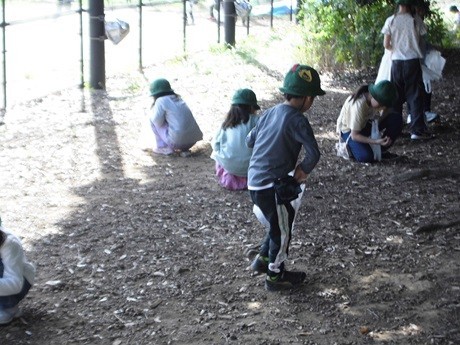道路の歩き方や公共の場での過ごし方を学んでから出発!1年生はどんぐりを拾い、2年生は秋探しをしました。どんぐりや松ぼっくりなど、たくさん見つけることができました。