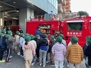 消防車や救急車を間近で見せていただき、車両に積まれている道具や、火事や救急の現場での役割について、分かりやすく説明していただきました。