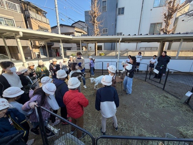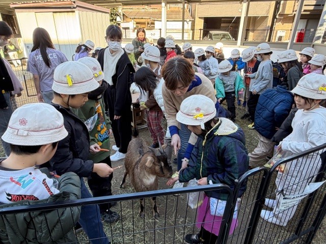 志村第二小学校の2年生が、生活科の学習の一環として、本校で飼育しているやぎの見学に来校しました。