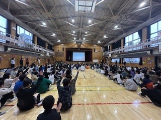 音楽が流れると同時に、たくさんの手が勢いよく挙がり、体育館は大盛り上がり。全校のみんなが笑顔で楽しむ時間となりました。