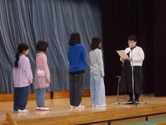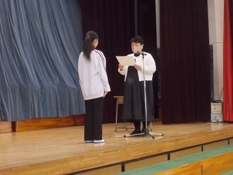 今日は、全校朝会で表彰を行いました。