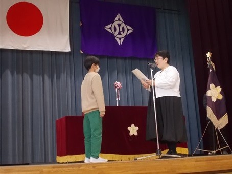 また、各学年の代表児童に修了証を手渡しました。一人一人が自分の役割を果たしながら過ごしたこの1年は、確かな成長の積み重ねとなっています。