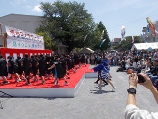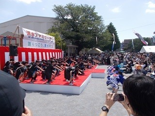 お祭りの中で5年生がソーラン節を披露しました。堂々とした演技、大きな掛け声、とてもかっこよかったです。