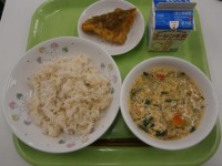 ごはん 鶏肉の北京ダック風 白菜の甘酢和え(ラーパーツァイ) 卵スープ