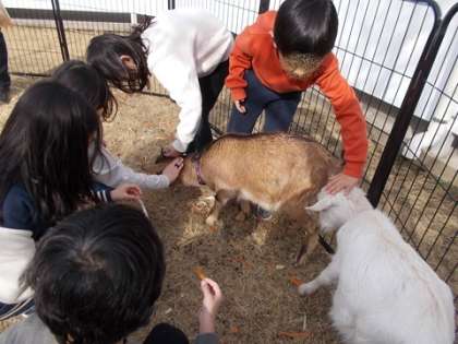 今日は、だいぶ子どもたちにも慣れて、餌を手から食べる様子も見られました。
