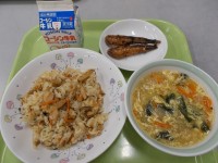 ・たけのこごはん・カレイのしょうが風味焼き・吉野汁・牛乳【たけのこごはん】 たけ...