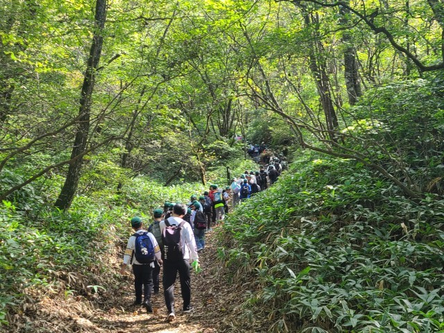 初めの20分は、アップダウンの多い山道でしたが、後半は、榛名富士が視界にドンと入りながら、平坦な道を歩きました。