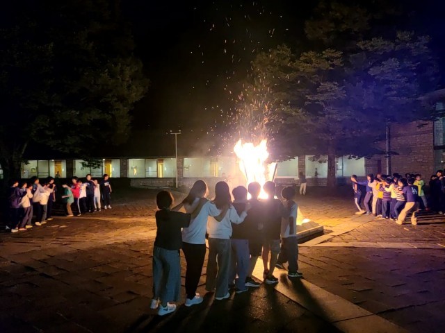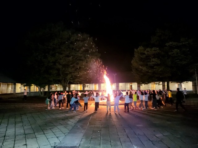 第1部は外で火の女神の儀式を行い、そのあとレクリエーションでフォークダンスを行いました。
