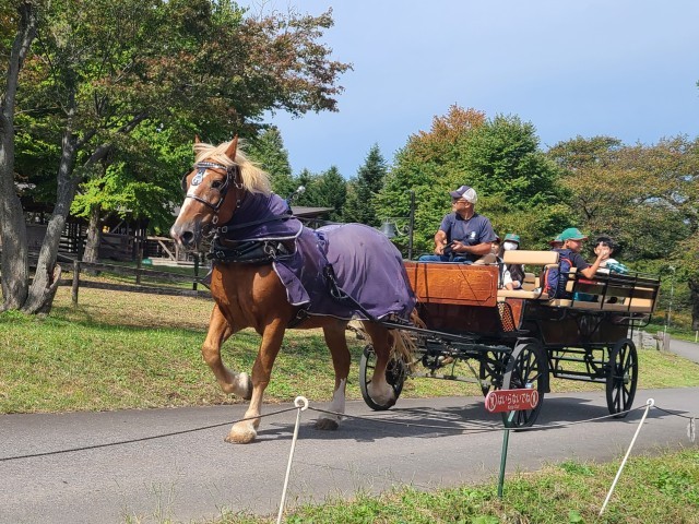 ひつじとやぎの体験コース、馬車コース、ひつじと牧羊犬のふれあいコースの様子です。