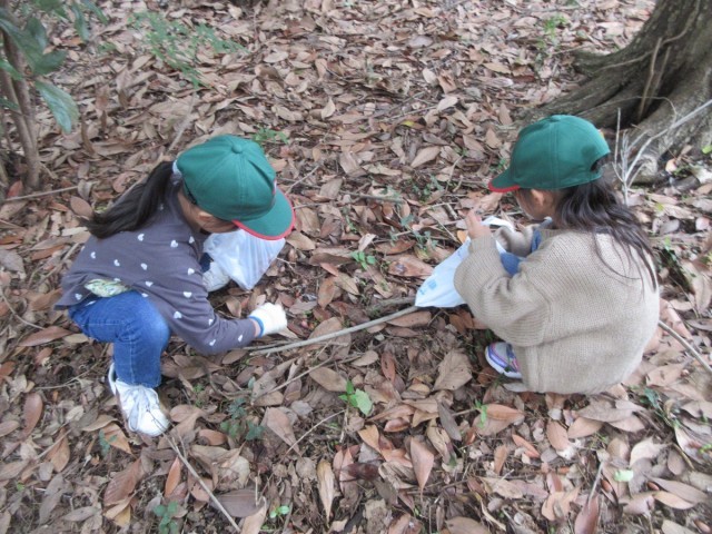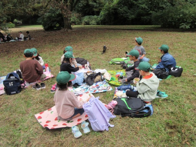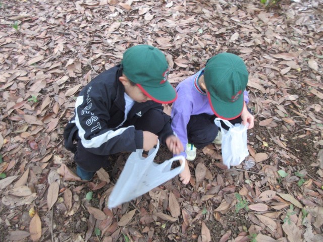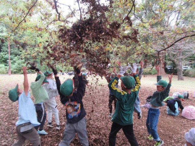 その後の活動では、1年生がどんぐり拾い、2年生はクラス遊びを行いました。