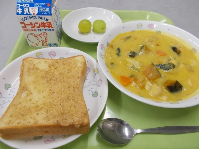 今日は海外で有名な“ハロウィン”という秋の収穫祭の日です。志五小の給食にもかぼちゃを使いました。
