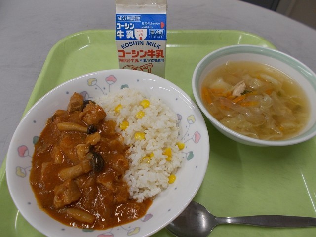 “ポークチャップ”は、豚肉をケチャップベースのソースで味付けしてソテーした日本の洋食メニューです。アメリカ発祥の「ポークチョップ」(豚の骨付き肉を焼いた料理)を元に、日本でアレンジされた料理と考えられています。板橋区の給食では初登場です。