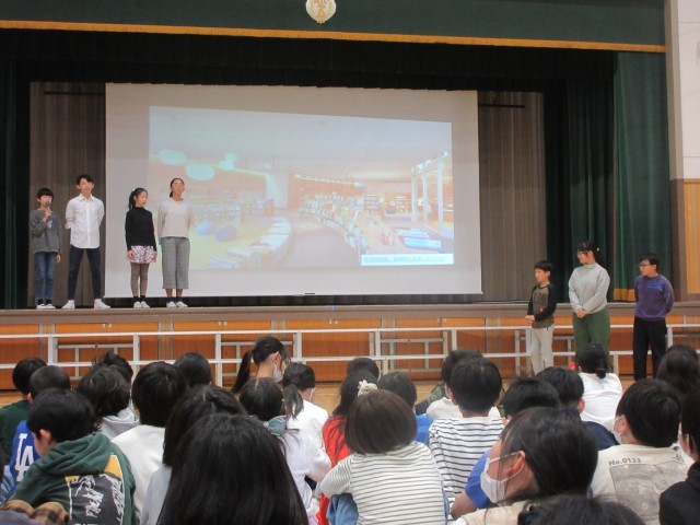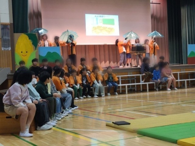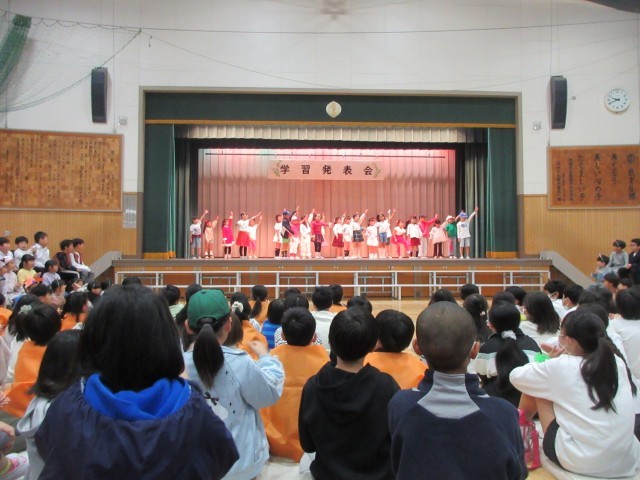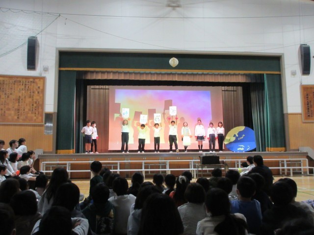 インフルエンザによる学級閉鎖や学年閉鎖が続き、思うように練習ができない日もありましたが、子供たちが頑張って練習してきた成果を発表することができました。劇中の台詞で伝えたり、調べたことを聞き手に分かりやすく伝えたり、身体いっぱいに踊ったり歌ったりして、子供たちは生き生きと表現しました。各学年の頑張りに、たくさんの笑顔が溢れ、全校児童で素敵な時間を過ごすことができました。