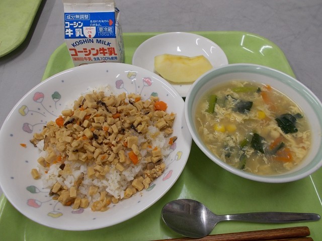 今では「つがる」・「ふじ」・「紅玉」・「シナノスウィート」などいろいろな種類のおいしいりんごが出まわっています。今日は、今が旬の「ふじ」というりんごです。甘みが強く、八百屋さんでもよく見かける人気のある品種です。
