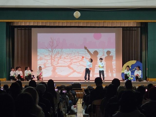 社会科「大切な水」「ごみ問題」、総合的な学習の時間「心と心で伝え合おう」(志村学園との交流学習)を通して、学んだことや感じたことを場面ごとに伝えました。4年生が、各学習からしっかり学び合ったことが、たくさんのクイズからも伝わります。違いを認めた共生社会、環境問題については、大人たちも改めて考えさせられるテーマでした。