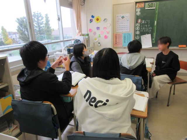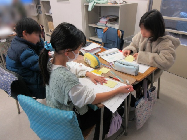 6年2組の国語「海のいのち」を読んで、登場人物の生き方について考えていきます。グループで音読をしたり、父親の人柄が分かるところに線を引いて父親の生き方について伝えあったりしていました。命の尊さや自然との共生について、深く考えていく時間です。