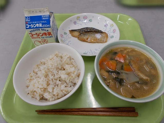 給食では、けずりぶしでだしをとり、とり肉・野菜・じゃがいも・こんにゃく・油あげを入れてさつま汁をつくりました。