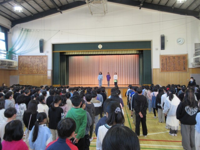 3学期の始業式では、3年生の代表児童が2学期の振り返りとともに3学期のめあてを発表しました。ステージの上で、立派に伝えることができました。