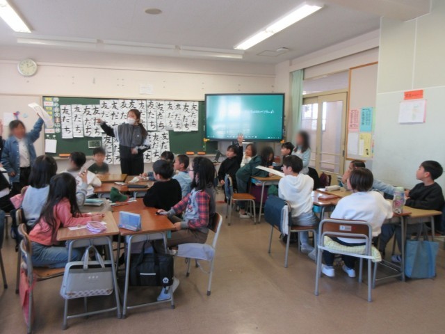 3年3組では、4時間目の最後に班対抗で連想ゲームを行っていました。「○○と言えば…」連想した回答が一番多いと○です。笑顔いっぱい盛り上がっていました。