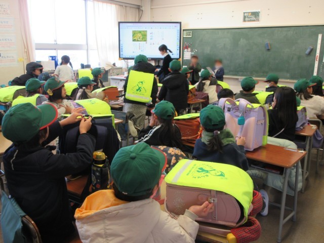 1年2組は、整理係の子供たちが、後ろのロッカーの中を点検したり、整理整頓しています。今日決めた係です。また、帰りの会では、日直の子供たちが台本に従って、上手に声をかけて進めていました。