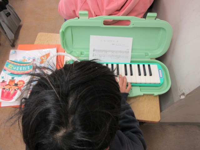 2年2組の音楽の様子です。6年生を送る会で歌う「大切なもの」を歌っていました。列ごとに歌っていきます。交代するたびに、歌声がいつも以上に力強く、空気感にあたたかさがありました。鍵盤ハーモニカでは、ミッキーマウスマーチをタンギングを意識しながら演奏していました。先生から、頑張りを褒められて嬉しそうな子供たちでした。
