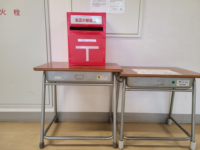 オンラインの全校朝会では、来週から始まる「志五小ゆうびんきょく」について、2年生の代表児童からのお知らせがありました。