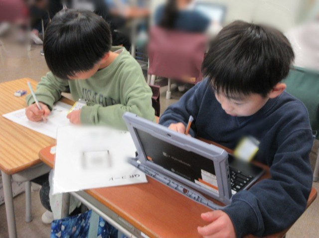 本時では、学習方法を自分で選んで、お話に登場するキャラクターの名前や性格、好きなものや得意なことを考えていきます。中盤で、一人一人の紹介があり、それをヒントにして(他者参照)後半の個人の学習を進めました。想像力をふくらませて、楽しいお話の筋道ができつつある児童もいました。