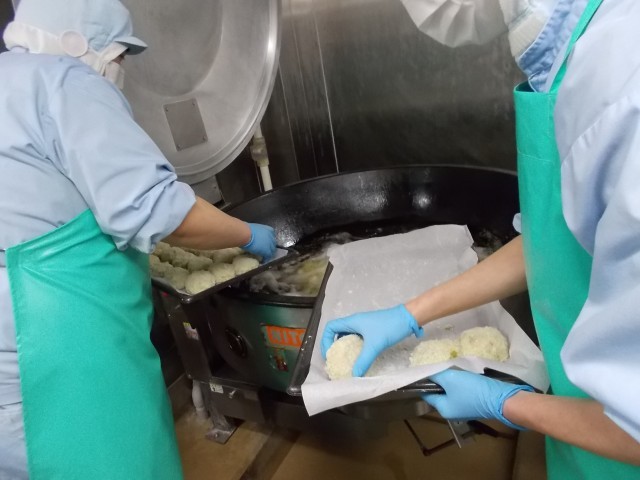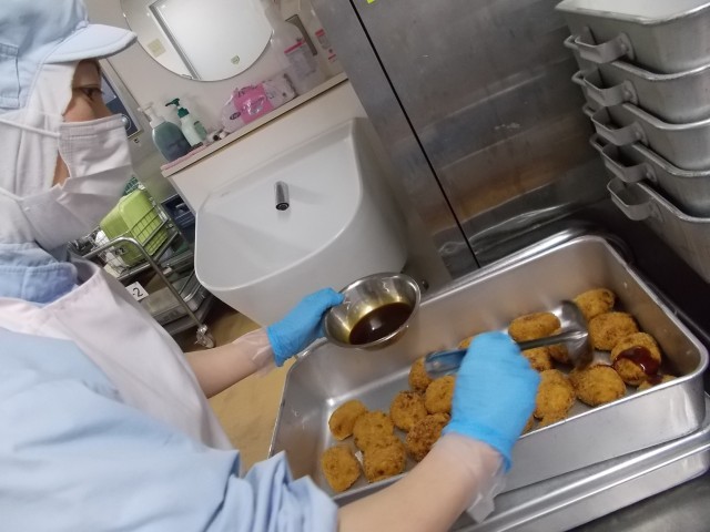 志村第五小学校ではカレー風味のコロッケを535個手作りしました。